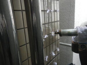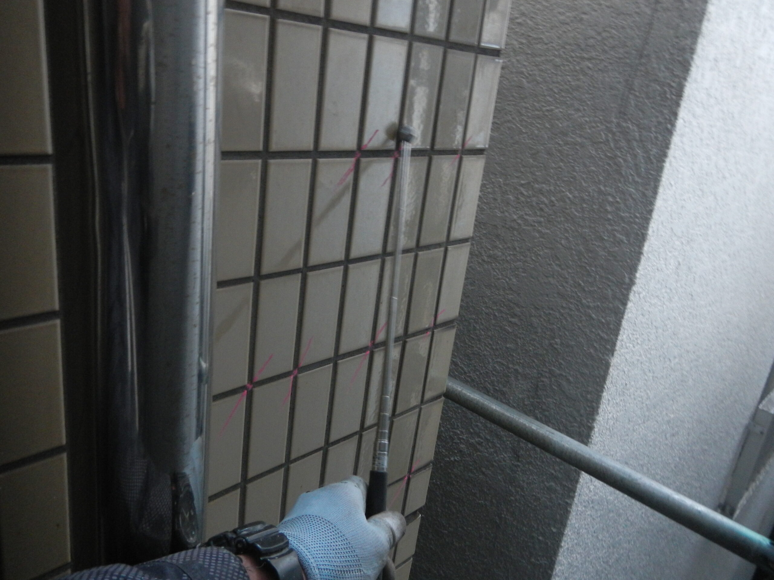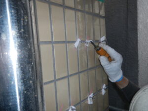 ✎施工前〜穴あけ〜清掃〜注入~ピンの挿入〜目地戻し〜完了